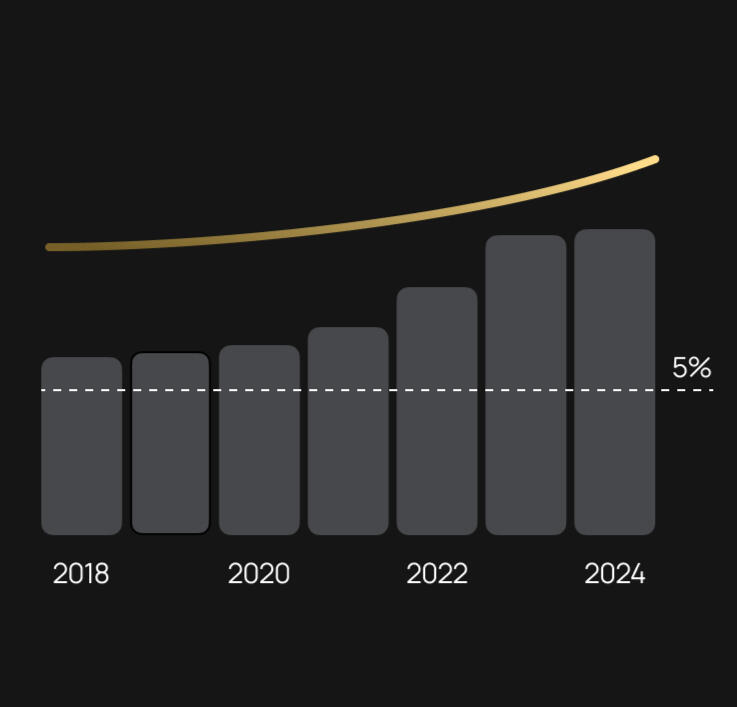 The wealthiest — institutional investors — allocate 5–10% to private equity. And that number is rising.